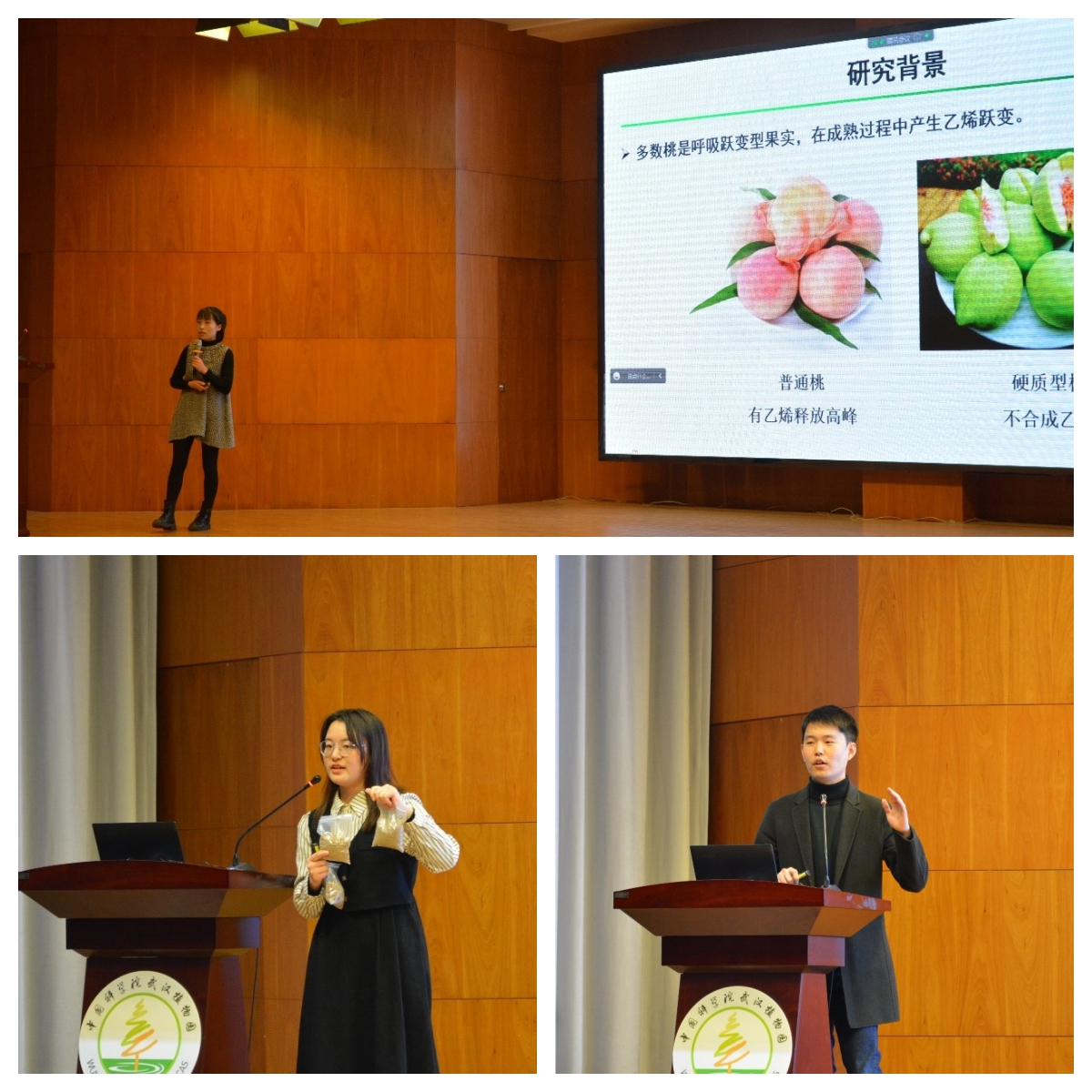 江汉大学生命科学学院副院长曾长立教授、武汉植物园特色农业资源植物研究中心主任韩月彭研究员为口头汇报二等奖研究生颁奖