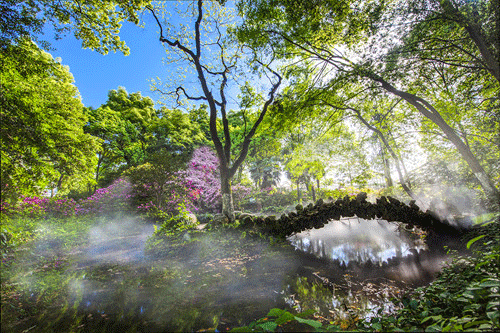 迷雾丛林运用园林艺术手法营造出迷雾般的丛林意境,漫游于其间,犹入仙境,此处蕴含着丰富的负氧离子,能增强人体的免疫功能,有益身体健康。同时,其优美的景色也是写生、摄影极好的素材。