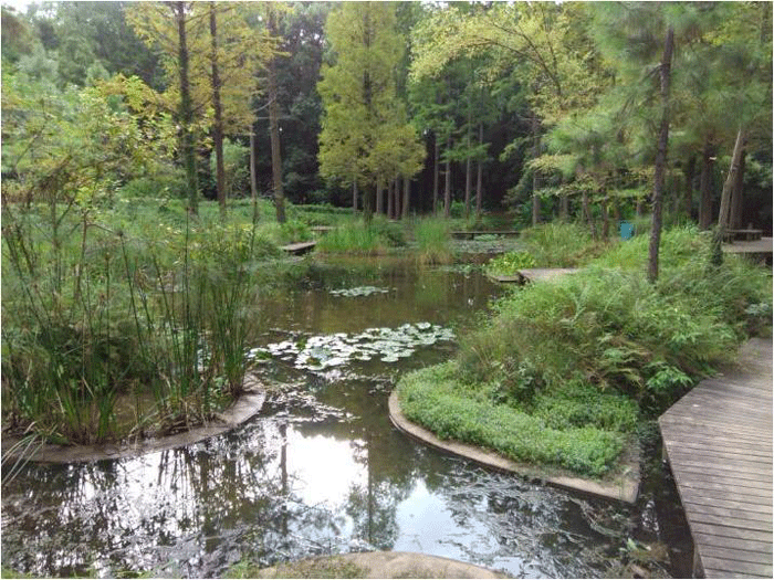 湿地植物区占地面积约1公顷。这里栽植有丰富多彩的湿地植物:疏花灯心草、慈姑、莕菜、北水毛花、水葱、伞草、高氏苔草、水木贼、紫苏、细辐射枝藨草草…数百种植物各具特色、摇曳生姿,如此变幻美丽,让人流连忘返。该湿地植物区不仅可以观赏,同时集物种保育、群落展示和科学普及于一体,为公众提供湿地植物物种和群落展示以及植物资源信息服务平台,为湿地植物资源可持续利用研究提供种质材料和基础科学数据。