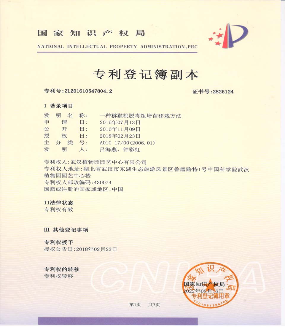 中国科学院武汉植物园专利品种猕猴桃
