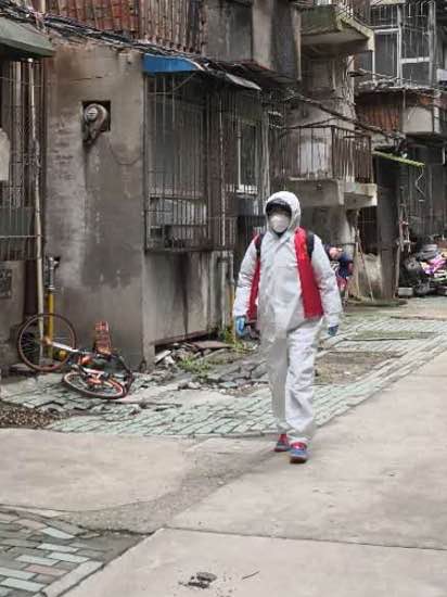 刘怀博在楼道消杀