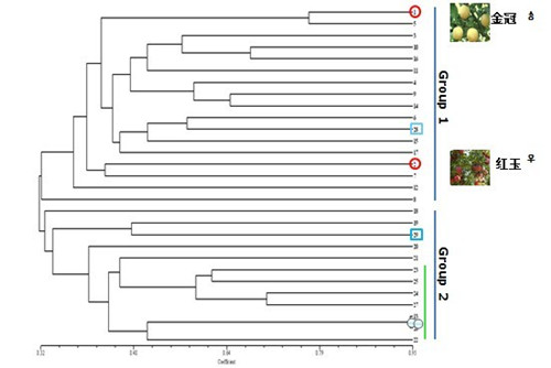 中国科学院植物种质创新与特色农业重点实验室果树分子育种课题组张琼博士在韩月澎研究员的指导下,选用‘金冠’和‘红玉’杂交F1群体,开展了苹果糖、酸含量的QTLs定位研究。首先利用均匀分布在17条染色体的SSRs标记,对29份种质资源进行遗传多样性鉴定,结果表明‘金冠’和‘红玉’遗传差异较大,它们杂交构建的F1群体比较适合遗传连锁图谱的构建。扫描苹果基因组序列,发现了28,538个简单重复序列(SSR),并开发了81个新的SSRs标记,利用这些新开发的SSRs和前人发表的标记对红玉/金冠F1代286个单株的基因型进行了检测,构建了一张苹果基因组连锁遗传图谱,图谱共包括251个位点,总长1720.9 cM,两个标记之间的平均距离为7.3 cM。同时,构建了红玉/金冠F1分离群体的果实品质性状数据库,包括苹果酸、果糖、葡萄糖、蔗糖等组分含量,采用区间作图法在第8号染色体检测到1个与苹果酸含量相关的QTL,LOD值为3.45,能解释16.9%的表型变异。一系列研究不仅为阐明苹果果实甜、酸性状的遗传机制提供了理论基础,而且为果实品质性状的遗传改良提供了分子元件。
