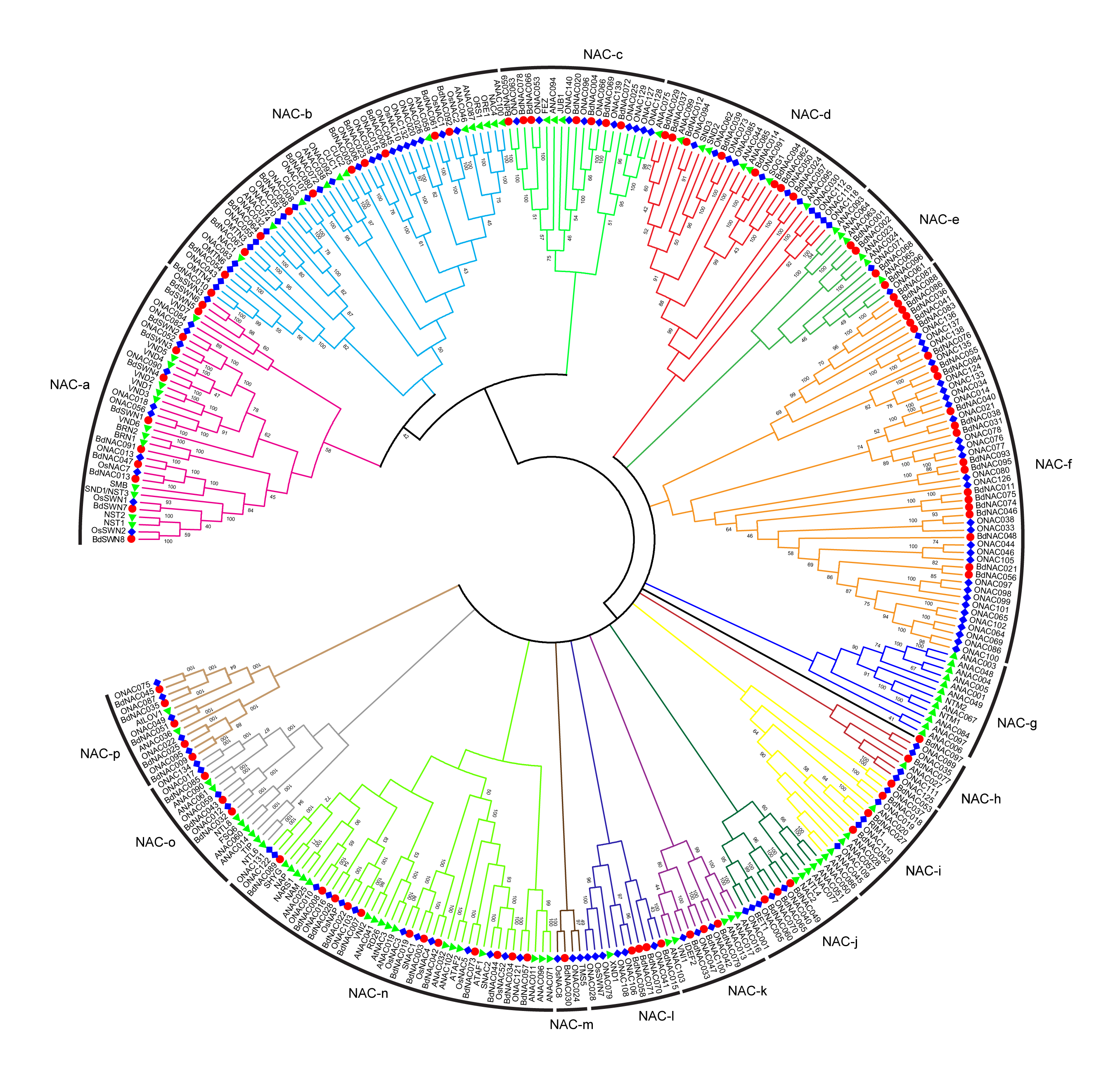 二穗短柄草、水稻和拟南芥NAC家族成员进化树