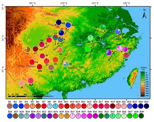 中国科学院植物种质创新与特色农业重点实验室猕猴桃种质资源与育种学科组博士生杨爱红在姚小洪副研究员和黄宏文研究员的指导下,以孑遗植物鹅掌楸为研究对象,采用自主开发的叶绿体基因组微卫星以及核基因组微卫星分子标记(American Journal of Botany, Yang et al., 2012),在了解古气候变化对物种地理分布的影响的基础上,比较分析了边缘居群与核心居群的遗传多样性、基因流动态以及适应性遗传变异。研究结果发现,鹅掌楸残存居群的遗传多样性的分布格局不支持“核心-边缘”假说,即边缘居群与核心居群不存在显著的遗传多样性差异,但是存在从核心居群到边缘居群的非对称基因流,这种非对称基因流可能限制了该物种的扩张潜力(Scientific Reports, Yang et al., 2016)。此外,基于AFLP分子标记的全基因组扫描(genome scan)研究发现,歧化选择(divergent selection)在鹅掌楸残存居群的适应性进化中起主导作用,冬季气温、夏季降水以及太阳辐射是该物种分布区限制的主要环境因子 (Frontiers in Plant Science, Yang et al., 2016)。该研究结果为探讨物种如何适应环境变化带来了新的启示,也为濒危物种种质资源的保护和可持续利用提供了科学依据。