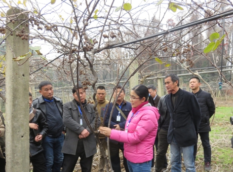 陈美艳在武汉植物园国家猕猴桃种质资源圃分小组冬季修剪实操培训
