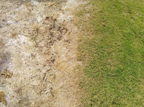 a耐盐草坪草繁育基地(起草前) b耐盐草坪草繁育基地(起草后)