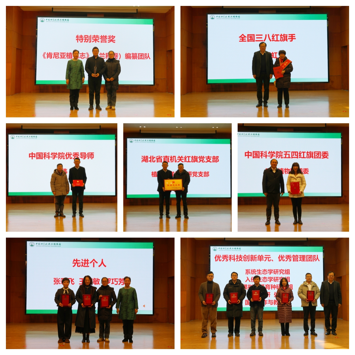 会议表彰了武汉植物园特别荣誉奖、全国三八红旗手、中国科学院优秀导师、湖北省直机关红旗党支部、中国科学院五四红旗团委及年度优秀科技创新单元、优秀管理团队和先进个人。