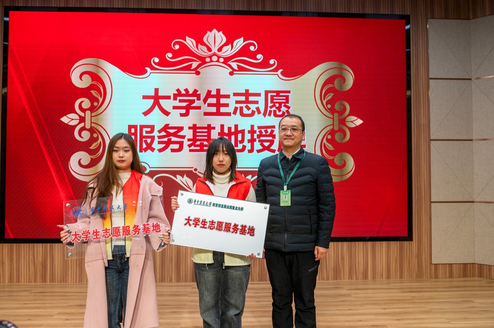 随后,志愿者表彰大会隆重召开。活动对2022-2023年度优秀志愿者进行表彰,颁发了优秀志愿者、最美志愿者、志愿者之星等奖项,并邀请志愿者代表上台颁奖。武汉植物园和华中科技大学、华中农业大学深入共建了大学生志愿服务基地,活动仪式上,科普开放中心副主任(主持工作)梅林为两个大学生志愿服务基地授牌。“绿色伙伴”志愿服务分队实行“植物园工作人员队长+志愿者队长”双队长制,通过共建共管的方式,构建长效运行机制,活动为摄影摄像分队、科教活动分队、园林园艺分队举行了授旗仪式。梅林对志愿服务队的辛勤付出和累累硕果表示感谢,他希望广大志愿者以“绿色伙伴”志愿服务队为平台,以志愿服务力量助推生物多样性保护事业发展,发扬志愿精神,为打造中国植物园特色志愿服务品牌,建设美丽植物园贡献力量。